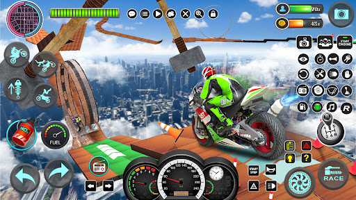 Playing city superhero bike racing simulator 2018 is always fun, but it is more important to become the real moto rider bike racer champion and dominate all the levels in this city superhero motor cycle racing driving simulator 2017. In mega ramp stunts speed bike rider driving game 2018 there are two modes to play i.e stunts mode and the racing mode. Master your skills in mega stunt bike riding and race against time and then challenge opponents in real motor cycle races which you have learned in real bike games.