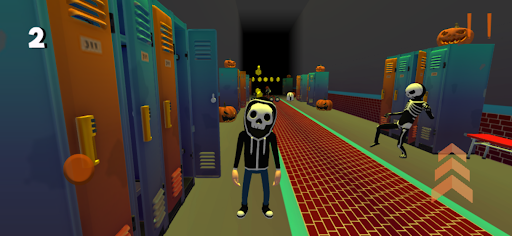 It's not all candy and costumes, though! You'll need to navigate through the school, avoiding tricky foes like friendly ghosts and mischievous kids dressed in Halloween skull suits. Your mission is to collect coins and make your way through the night, all while keeping your distance from these playful pursuers.