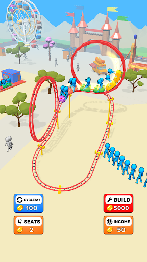 Increase your efficiency to make as much money as you can! Hit the screen and speed up the train so visitors feel the drive and you hear the clinking of coins. Merge trains to increase the quality, and at the same time, the cost of the trip. Add more checkpoints and make more and more intricate slides. And boost your income to double your efforts! Can you become a real tycoon and grow your business to its limits? Then build your own rollercoaster and earn some cash!