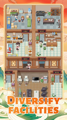 Hire handsome actors to perform and attract customers. Design your tea house facilities any way you wish in this peaceful and relaxing simulation game.