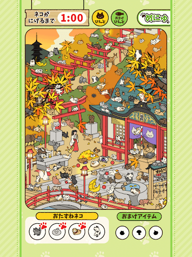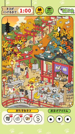 Find four cats within the time limit! Collect bonus items for extra stages. Perfect for cat lovers and brain training. Free and easy for all ages.