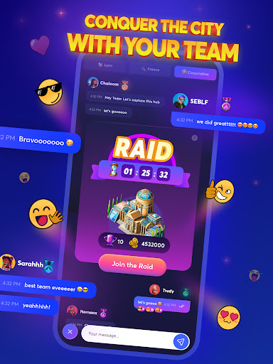 Earn an income each hour, every time different players visit your building . Compete against players around the world and emerge as the richest real estate entrepreneur !