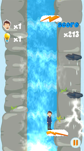 He has many ideas and is about to discover something very big! Can you help him to reach the end of the falls and carry out his great project? A great invention awaits you!