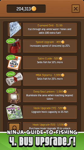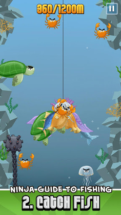 The game characters center around Otoro, an unfit and unskilled ninja who ironically, has impeccable skills in fishing. With interactive controls, dive deep into the ocean and utilize tilt controls to capture as many fishes as you can. Once you're done with that, use a katana-powered touch technology to slice the fish for maximum gold profit. But, beware of dynamites!
