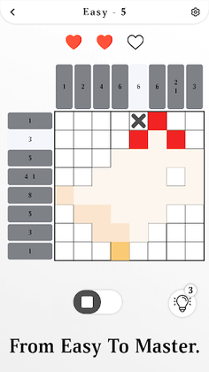 We offer 3 Nonogram difficulty levels, each difficulty has many levels to discover and each level has its pixel picture to train your brain.
