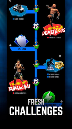 Acquire rare skins for your fighter's shorts, rise through the ranks, and unlock spectacular knockout moves, celebratory gestures, and fighter entrances. Customize your athlete to shine in the arena and claim the title of the ultimate MMA victor.