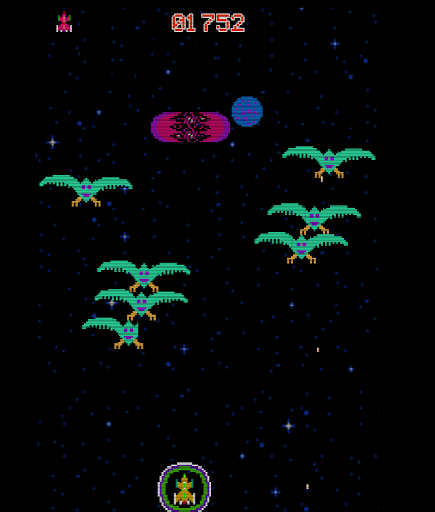inspirado en los juegos arcade de los 80 del estilo de Griffon, falcon, cóndor o ave fenix, salva a la población del ataque extraterrestre, utiliza tu escudo cuando este cargado para protegerte.