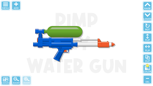 With the option to screenshot your designs and exporting your builds, you can share them with your friends online or compete for the highest coolness scores or even the best design. "Pimp My Water Gun" is a modular wall-based 2D toy weapon builder offering a broad range of realistic and unconventional parts. You can choose to enter the world of shooting galleries or stretch the limits and create sci-fi, futuristic, or artistic designs.