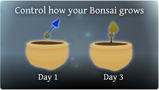 - Shape your bonsai over time by adjusting the direction arrows attached to each branch, then return later to see how it has grown.
