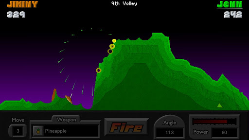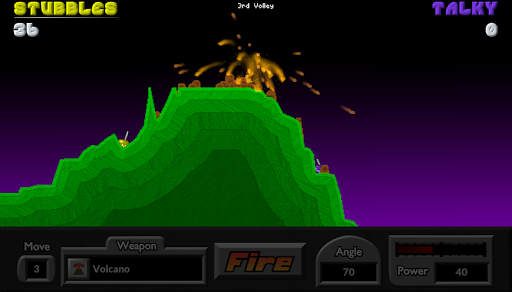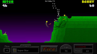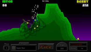 Once you're ready to take on your opponents, it's time to launch your arsenal across the battlefield using the game's simple controls. Just select your angle, power, and let your weapons fly. You'll have access to a wide range of ammunition, including the Cruiser, the Skipper, the Dirt Mover, and many more.