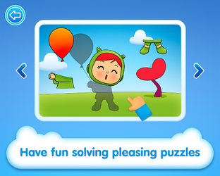 In the "Puzzles" mode players enjoy solving the characters' pleasing puzzles. They'll begin by tracing the outline, continue by colouring the drawing, and then learn how to place the pieces in the right places.