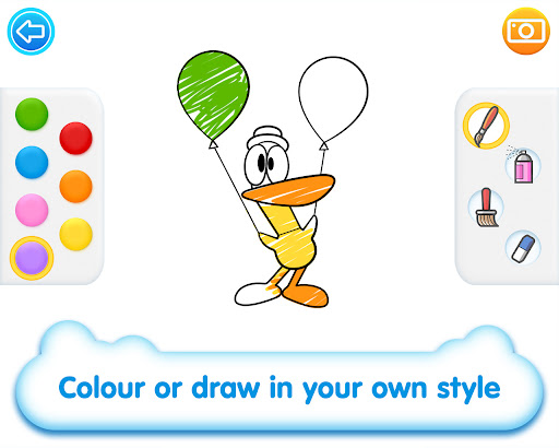 In the "Colour" mode, they can choose between 2 different options: 1) colouring the templates of their favourite characters or 2) drawing free style, without any set rules.