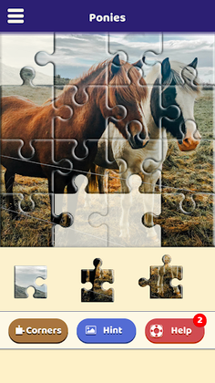 If you're stuck you can use "Hint" to have a glimpse of the picture or use "Help" to locate one piece.