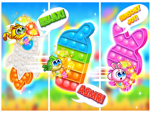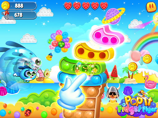 Pop Fidget Toy towers down for Character to Fly through the World! If Character hits Pop It tower before Popping Bubbles down, lose a life and restart. Intuitive one hand control.