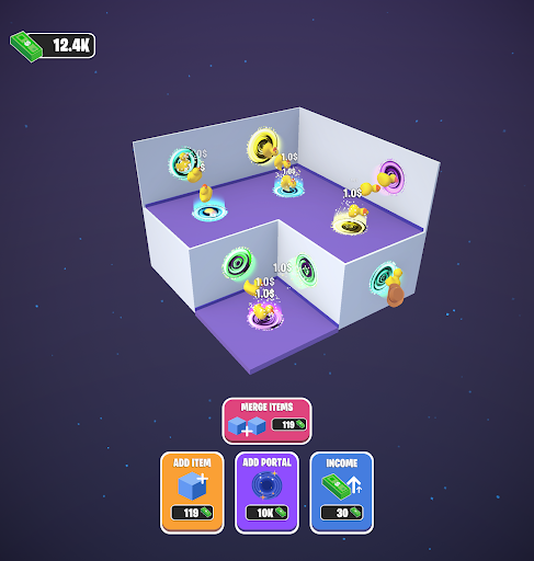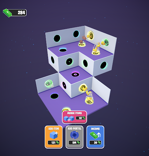 Upgrade your income by merging items and unlocking new portals for them to go through.