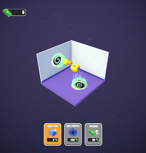 Buy new items and earn money as they go through portals.