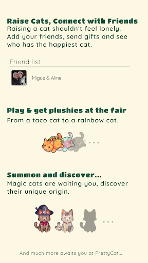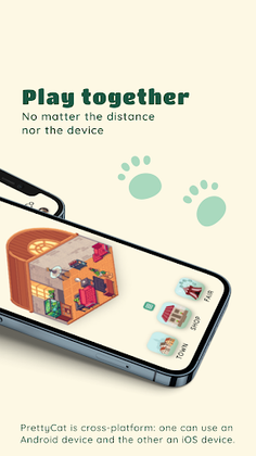 PrettyCat: A cozy multiplayer pet game where you raise virtual cats, decorate a shared home, and play together with friends or partners. Available in English and Spanish.
