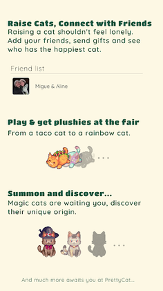 PrettyCat is a warm and snug online pet game designed for couples, buddies, or anyone who adores cats. Adopt your initial feline companion, adorn your communal abode, and partake in day-to-day life — even when separated by distance.