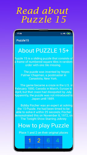 The 15-puzzle (also called Gem Puzzle, Boss Puzzle, Game of Fifteen, Mystic Square and many others) is a sliding puzzle that consists of a frame of numbered square tiles in random order with one tile missing.