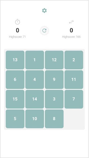 The goal of the puzzle 15 game is to place all tiles in correct sequence from 1 to 15 Features: - 4 different levels (3x3, 4x4, 5x5 and 6x6 frames) - 4 color schemes - slide or tab, single or multiple tiles per move - Time and steps high scores - Leaderboards (Google Play Game)