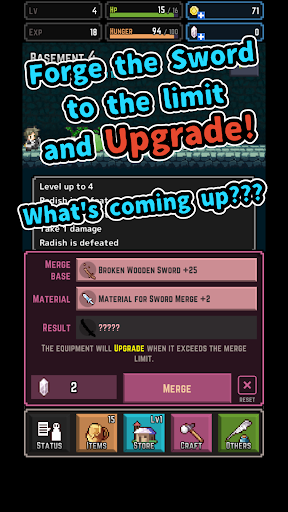 There are three types of equipment: weapons, shields, and accessories, and you can make them stronger by crafting them.