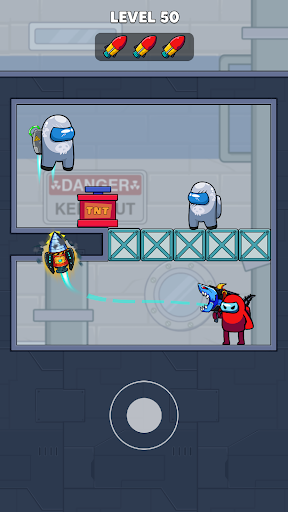 🕹️ Basic moves: Easily use the joystick, move it around to throw your rocket so you can kill all your enemies with the first throw
