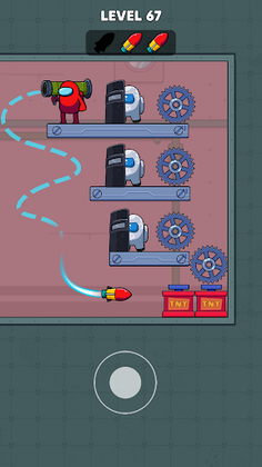 💥As an imposter, you will use your tactics to move your rocket and knock out the enemies. Let’s kick off the fight by looking around your surroundings and making use of the weapons available so you can kill your enemies at the same time. Crack the wall, dig into the ground, blow up the bomb, activate switches to drop the blocks, and do whatever you can to have the monsters defeated.