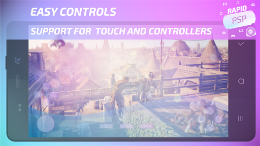 It is essential to note that Rapid PSP Emulator supports only PSP games and homebrew - it does not support PS1, PS2, PS3, or PS4 games. We don't provide PSP ROM, PSP ISO, or PSP CSO directly- you need to download PSP games manually from your console. You can use separate game controllers, such as PS4 games or PS3 games, or use default smartphone or tablet touch controls emulation.