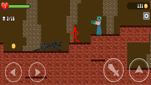 If you are a fan of fighting with stickmen animation, you will definitely like this game. It is impossible to stop playing! Complete levels and show your skills as a stickman duelist in battles against crowds of zombies and dangerous monsters. Red Stick has no other choice than win! Like noob vs pro. Stickmen fighters have their fights in the block world, the most interesting and long awaited playing mode in Stickmen games.