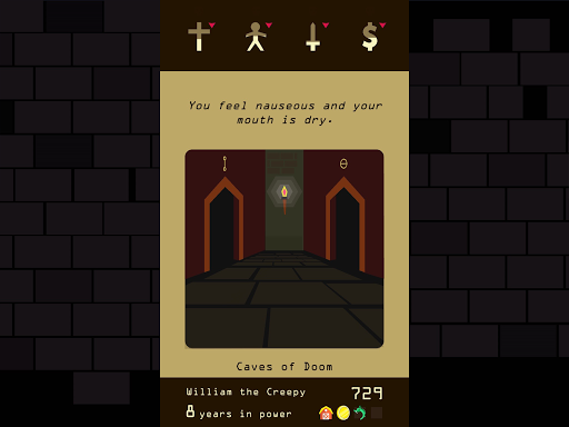 Experience the ultimate power of the monarchy in a modern medieval setting with this game – crowned as the Most Innovative Game of 2016 by the Play Store. Swipe your way to the throne and rule over your kingdom as a benevolent or malevolent ruler. It's your call! You will be constantly bombarded with requests from your advisors, allies, enemies and peasants. Your decisions will determine your reign's fate, and can even threaten the survival of your family dynasty.