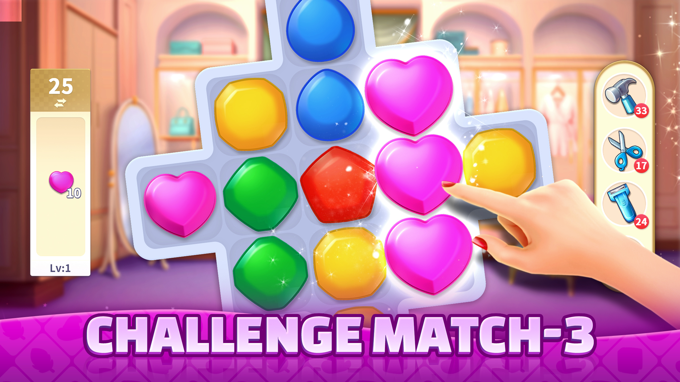 As you progress on your match-3 adventure, unlock even more fashionable looks!
