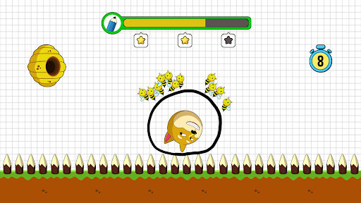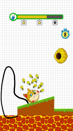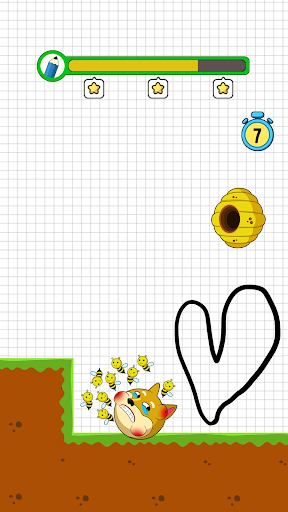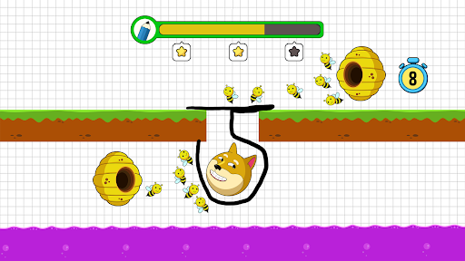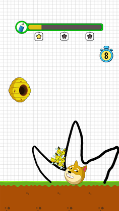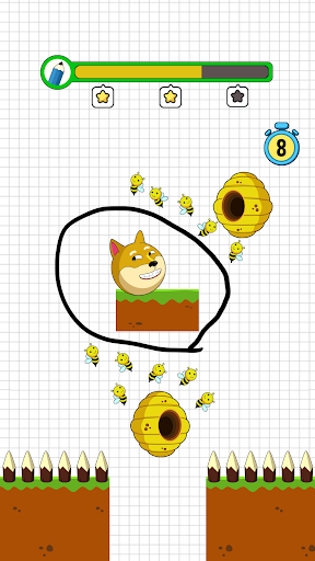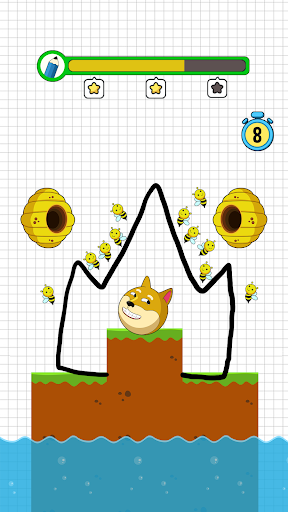 You can go on to the following level after saving the dog. The less ink you use, the higher rate you get. If you fail, please try to draw again to save the dog from bees. Try to win as many levels as you can this entertaining & simple game to sharpen your brain! Also, share with your friends and play save the dog bee together!