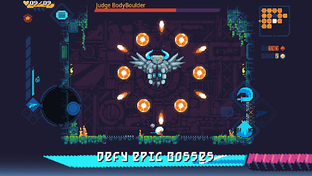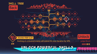 Slash your way through ancient machines as Kyhra in ScourgeBringer's fast-paced roguelite platformer in a post-apocalyptic world.