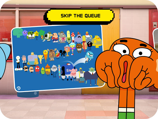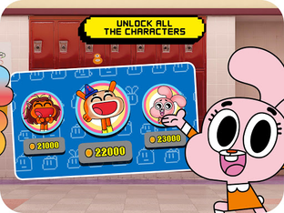Run, jump, and bounce off people’s heads to get Gumball to the front of the line. The farther you go, the bigger your combos get! Rack up cash to unlock new characters, levels, and rewards!
