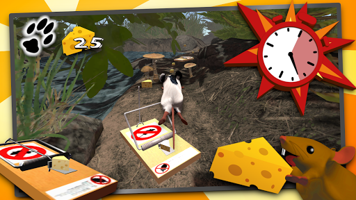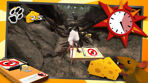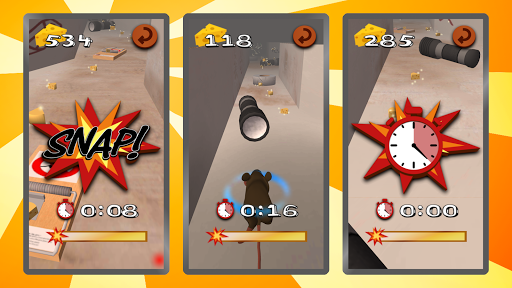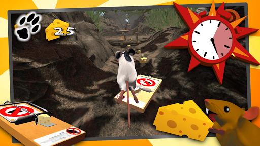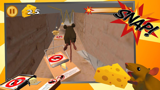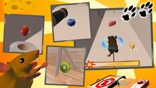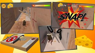 On its path through the labyrinth the mouse will also encounter obstacles. In order to pursue its cheese chasing quest the mouse needs to overcome every obstacle either by bypassing or by jumping over it. There are fixed (static) and moving (dynamic) obstacles. When the mouse runs against many static obstacles, it becomes dizzy and more difficult to control. The more it hits, the dizzier it gets. The dizziness disappears over time, if you manage to maneuver the mouse carefully past the obstacles. If this is not the case and the mouse continues to collide with static obstacles then it passes out and the game is over. Moving obstacles, such as Mousetraps, must be avoided at all cost. If a mouse gets snapped by a mousetrap, the game is over.