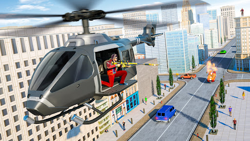 🚁 Helicopter Mission: While riding a helicopter, you'll use your air strike abilities to shoot and stop criminals.
