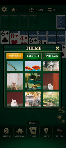 In this classic solitaire, there are tens of card faces and card backs, you can choose the one you mostly like.