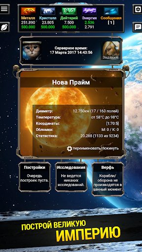 Жесткий донат, бесконечный гринд, глупые однообразные квесты и реклама – всего этого нет в нашей игре 😄 Зато в ней есть:★ Возможность создать собственную могущественную Империю с десятками планет-колоний во множестве галактик.