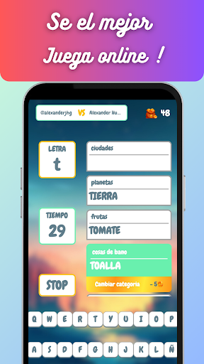 In this "Stop" game you have a limited time of 60 seconds to complete different words.