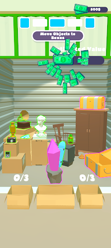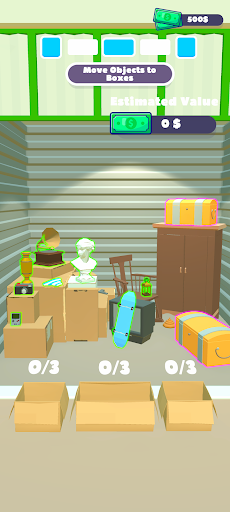 Examine the warehouses and place the items you find in cardboard boxes.