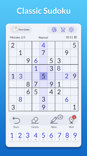 Classic Sudoku is a logic-based number puzzle game and the goal is to place 1 to 9 digit numbers into each grid cell so that each number can only appear once in each row, each column and each mini-grid. Also known as Sodoku, this brain puzzle game can help keep your mind sharp and healthy.