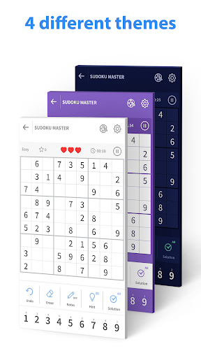 With daily puzzles and awesome rewards, Sudoku Master provides an exceptional experience for players of all levels. With simple-to-use notes and hints, you can master even the most difficult Sudoku puzzles with ease. You can enjoy the game's clean design and choose one of four beautiful themes or personalize the way you would like to play with various options, such as the auto-check for mistakes, the mistake counter, the number-first input method, and auto-save.