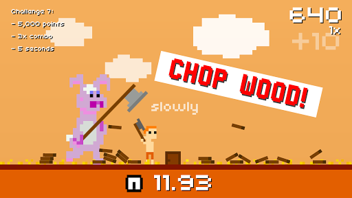 Chop wood and do it quickly to get more points. Be careful: do not hit the rabbit with an ax. Otherwise you will lose.