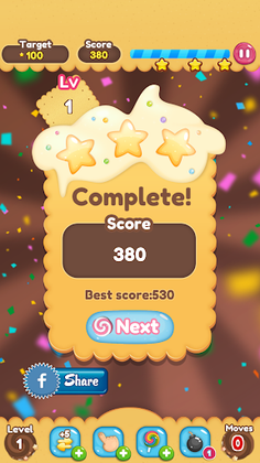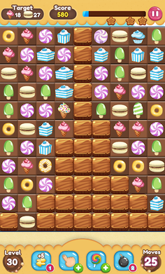 In Sweet World, every fourth and fifth item aligned in a row or column produce a special item that can help you clear more items on the board. Utilize these special items to complete the missions assigned to you in every stage.