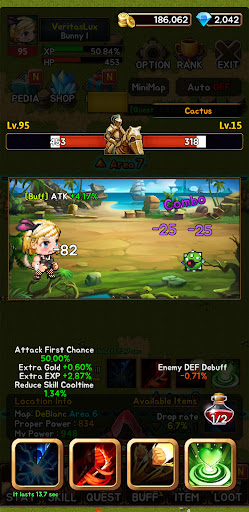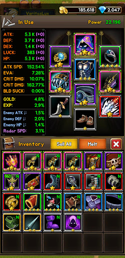 Level up your character's skills and develop their strength and expertise. Choose from a variety of unique skills to create your own battle style. Farm items and equip your hero with powerful gear to enhance their attributes and become even stronger.