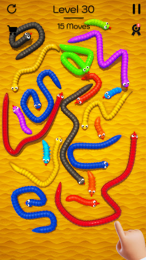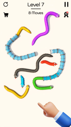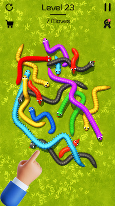 To play the game, simply tap and drag the snakes to move them around. You need to move the snakes in such a way that they untangle themselves without getting tangled up again. The game starts out easy, but the difficulty increases as you progress through the levels.
