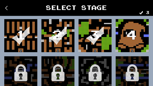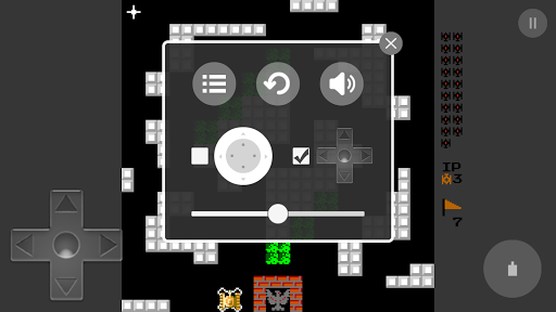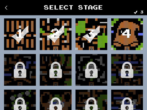 This game contains 35 different stages. Each stage contains different types of terrain and obstacles. Examples include brick walls that can be destroyed by having either your tank or an enemy tank shoot at them, steel walls that can be destroyed by your tank if it has collected three or more power-up stars, bushes that hide tanks under them, ice fields that make it difficult to control tank and pools of water which cannot be crossed by tanks.