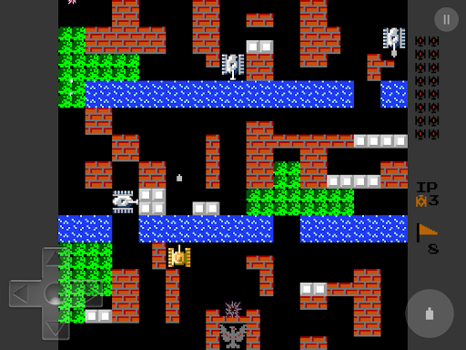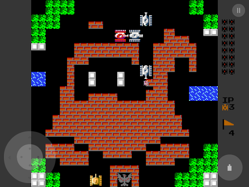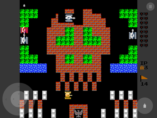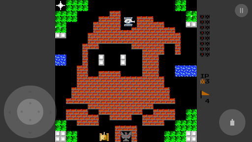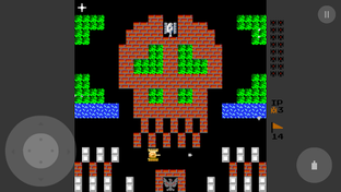 You are controlling a Tank, must destroy enemy tanks in each stage, which enter the play field from the top of the screen. The enemy tanks attempt to destroy the player's base (represented on the map as an eagle), as well as your tank. A stage is completed when you destroys all 20 enemy tanks, but the game ends if your base is destroyed or you loses all available lives. Note that your tank's weapon can destroy the base as well, so you can still lose even after all enemy tanks are destroyed.