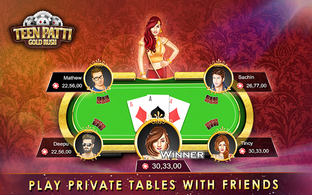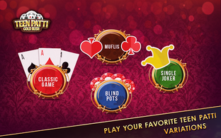 Beat your Monday blues and make the whole week exciting with this cool No 1 Card game on mobile. Play Teen Patti (also known as 3 cards brag, Indian Poker, teen pathi, 3 patti, flash and flush card game) with your friends and millions of dedicated Teen Patti Players from around the world.