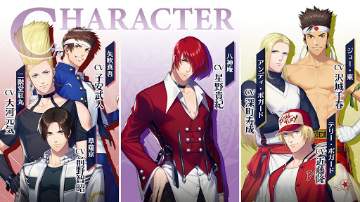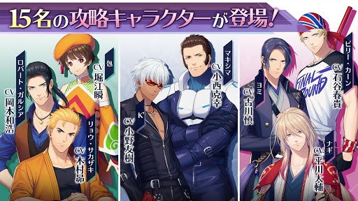 その運命を、愛し抜け。 SNKの大ヒット格闘ゲーム「THE KING OF FIGHTERS (ザ・キング・オブ・ファイターズ)」に登場する男性キャラクターたちとの友情や恋を描く、乙女向けイケメン格闘家育成ゲームが登場! ◆あらすじ◆ 「もうすぐKOFも始まるんだ。 マネージャーも、こなしてもらわないとな。」 会社が倒産し、住む場所と職を同時に失った主人公(あなた)。 なんとか見つけた住み込みの仕事は「トレーニング施設の管理人」だった。 東京・渋谷の一等地にあるというその場所で出会ったのは、 格闘大会「THE KING OF FIGHTERS」に出場する格闘家、草薙京。 彼らのマネージャーとなったあなたにもKOFの招待状が届き――!? ◆ゲームシステム◆ 【個性豊かなファイターたちと日本の危機を救おう】 格闘大会「THE KING OF FIGHTERS」に迫る不穏な影… ファイター同士の因縁の対決や、新たに芽生える絆が描かれる物語。 渋谷を舞台に始まる全4章の「メインストーリー」と ファイターたち一人一人との恋の物語を楽しめる「サイドストーリー」の大ボリューム! 【ファイターを鍛えるファイト&トレーニング】 マネージャーとして、ファイターのトレーニングをサポート! ファイトに参加して推しファイターにエールを送ろう! 【推しファイターとの絆を深める交流機能】 ファイターにスタンプを送ると返事がくる「SNS機能」や、 スペシャルボイスが聞ける「交流機能」で推しファイターとの時間を過ごそう! ◆メインキャラクター/キャスト◆ 草薙京(CV.前野智昭) 二階堂紅丸(CV.大河元気) 矢吹真吾(CV.子安武人) テリー・ボガード(CV.近藤隆) アンディ・ボガード(CV.深町寿成) ジョー・東(CV.沢城千春) リョウ・サカザキ(CV.木村昴) ロバート・ガルシア(CV.岡本和浩) 包(CV.堀江瞬) K′(CV.小野友樹) マキシマ(CV.小西克幸) ナギ(CV.平川大輔) ヨミ(CV.古川慎) ビリー・カーン(CV.石谷春貴) 八神庵(CV.星野貴紀) and more...!